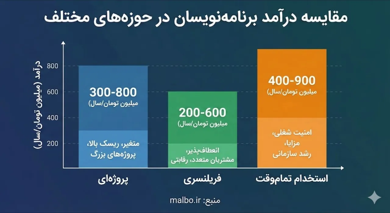 - کدنویسی پروژهای: درآمد پروژهای از چند میلیون تا دهها میلیون تومان