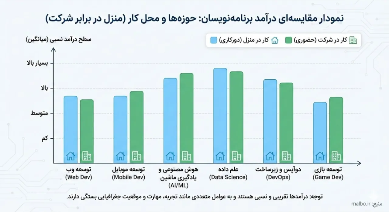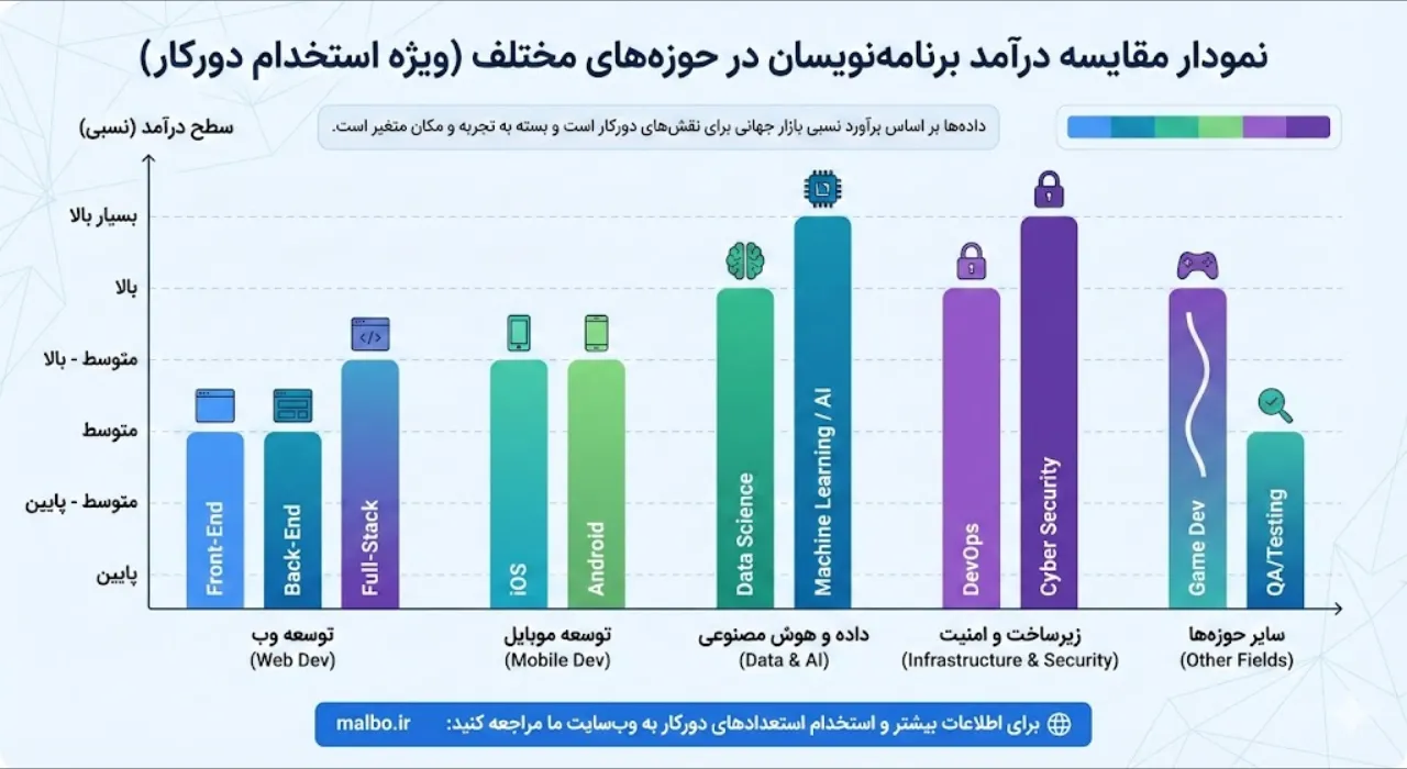 - کار ریموت برنامهنویسی: حقوق سالانه ۴۰ تا ۱۵۰ هزار دلار در شرکتهای بینالمللی