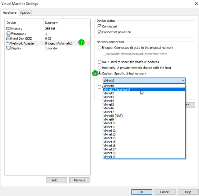 گذینه Coustom رو انتخاب میکنید و گذینه Host-only رو انتخاب میکنید