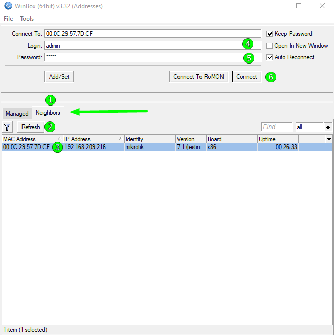 بعد از پیدا کردن میکروتیک روی مک آدرس ان کلیک کنید